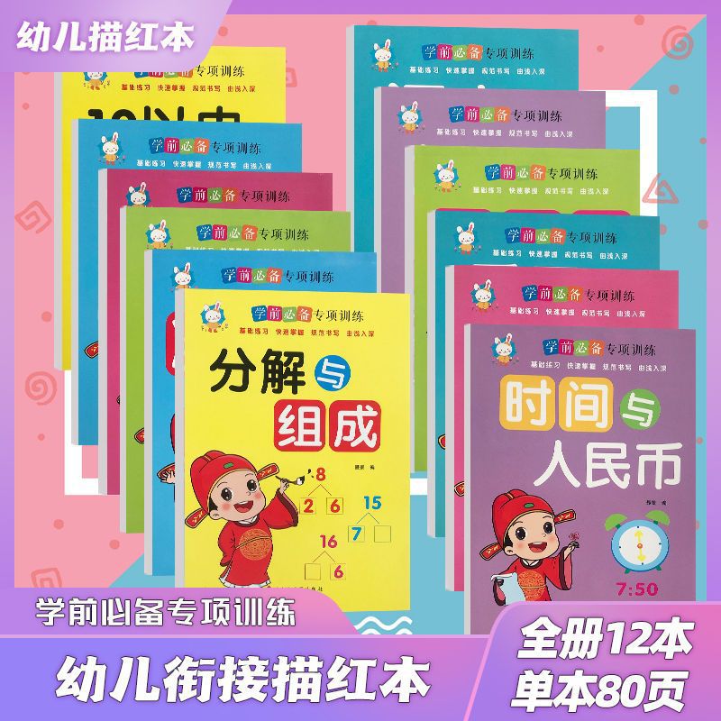 幼い連絡啓蒙訓練100以内加減算統合教材数字描赤ピンイン学前クラス12冊