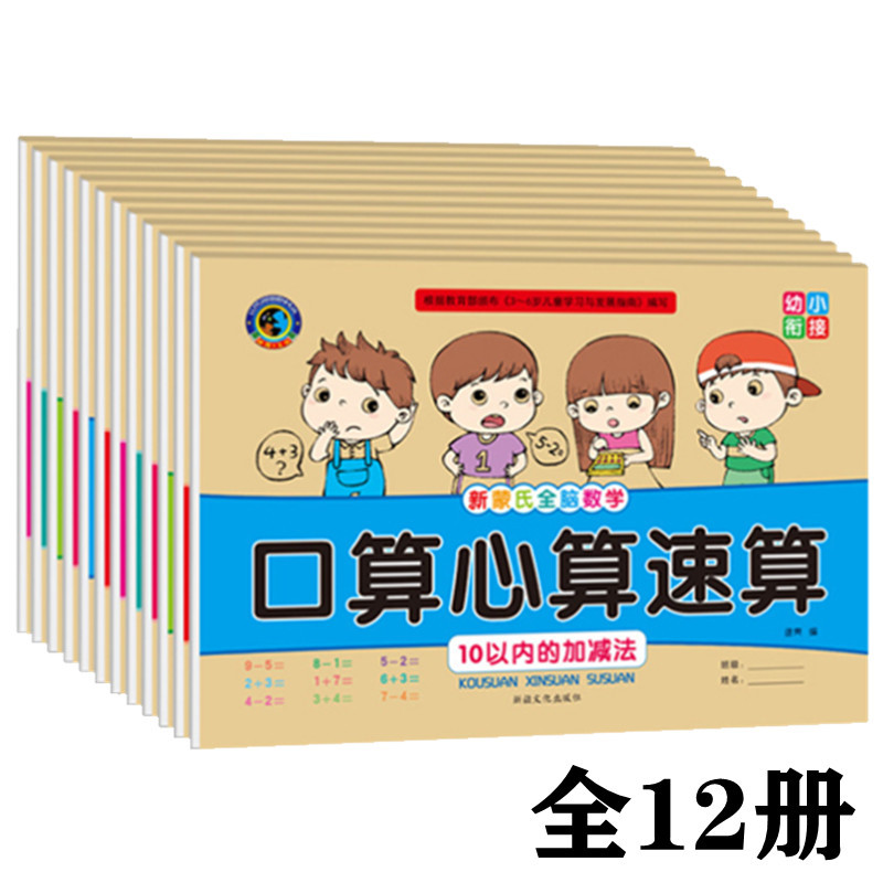 新蒙氏全脳数学漢字ピンイン数字描紅口算速算全12冊20/50加減算