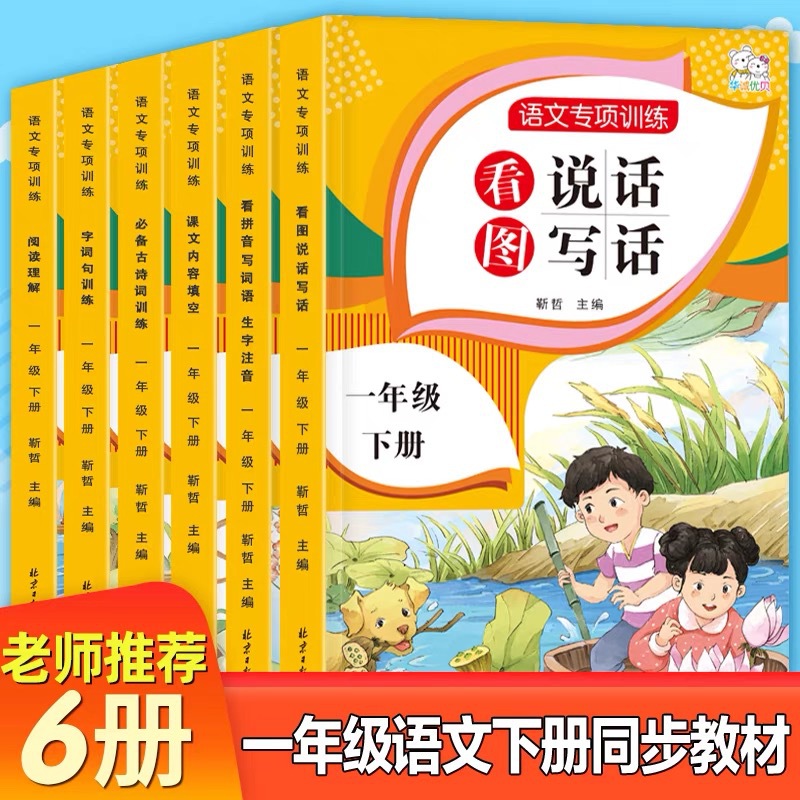 一年生の下巻国語は図を見て話を書く教材の全セット6冊の練習帳を読んで理解する特別な訓練をします。