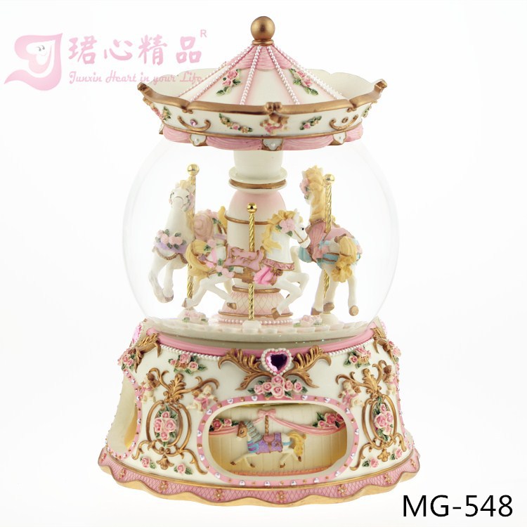 樹脂工芸品創意家庭回転トロイの木馬水晶球オルゴールバレンタインデー誕生日プレゼント彼女