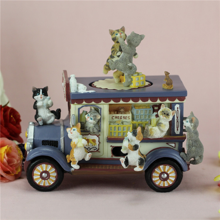 漫画の小さい車のオルゴールの猫のダンスのオルゴールの工場の直接販売の樹脂の工芸品の置物の子供の贈り物