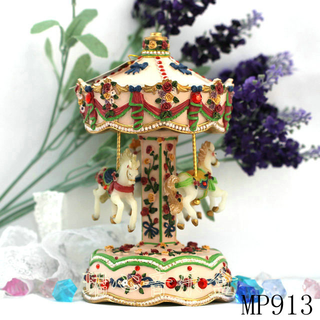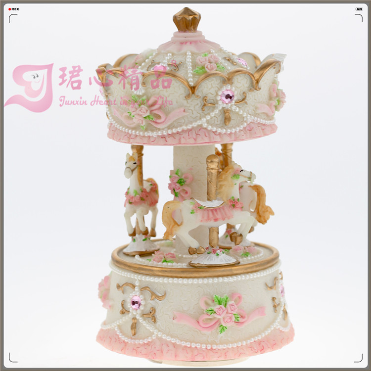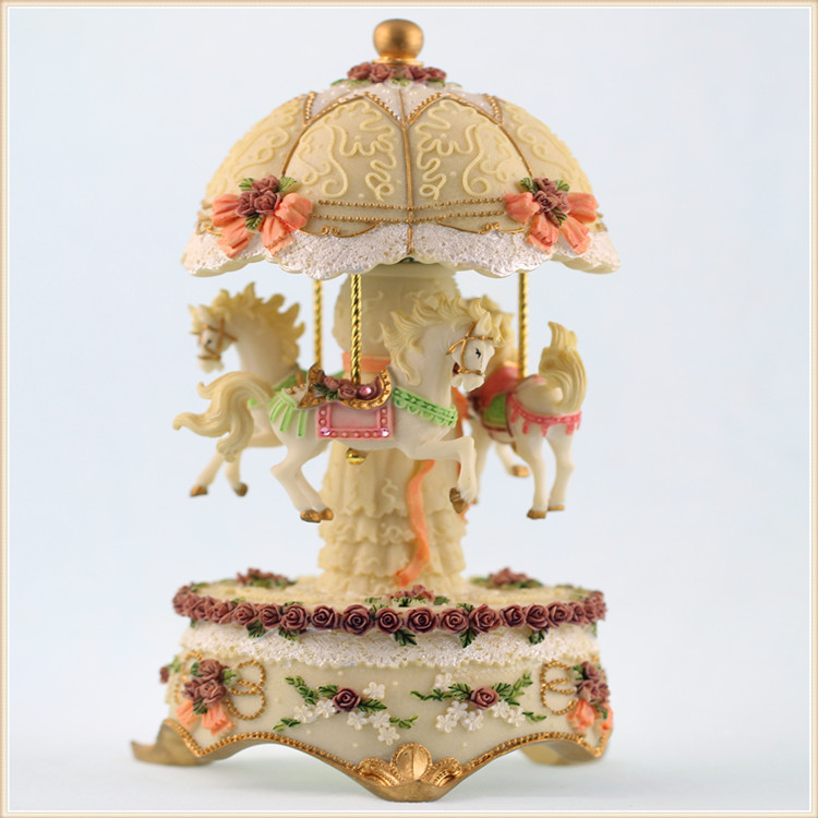 トランペット樹脂工芸品回転トロイの木馬オルゴールクリエイティブプレゼントバレンタインデー誕生日プレゼント工場直販
