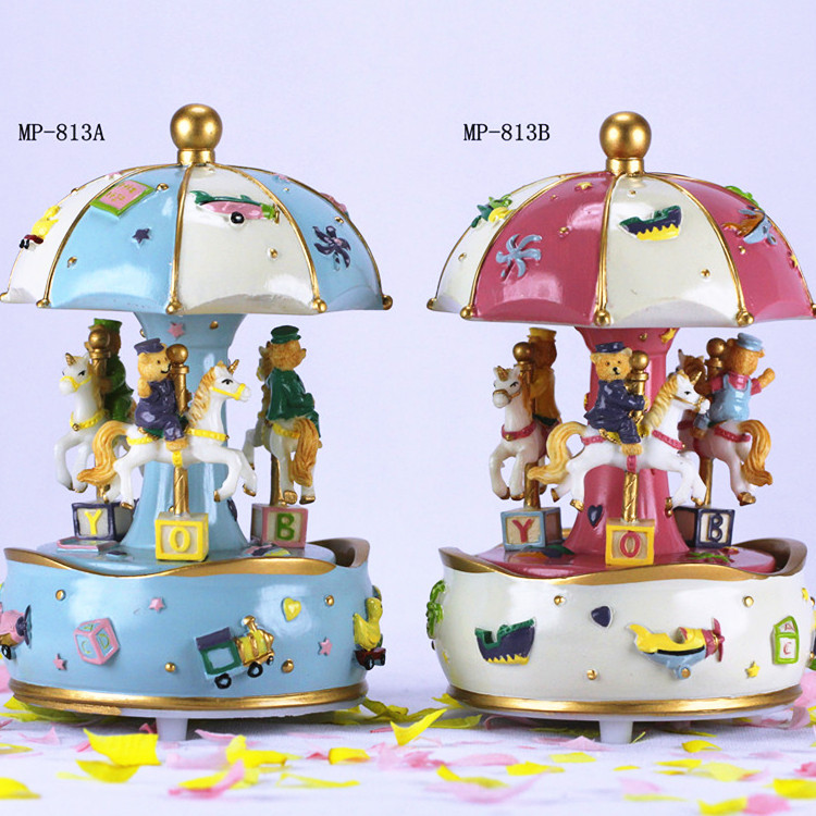 漫画回転トロイの木馬オルゴールかわいいクマ馬オルゴール樹脂工芸品誕生日プレゼント