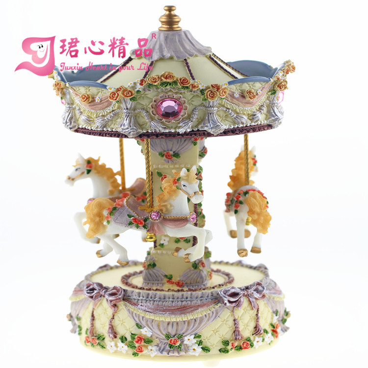 ミニ回転トロイの木馬オルゴールイルミネーション誕生日プレゼント樹脂工芸品工場店創意オルゴールプレゼント
