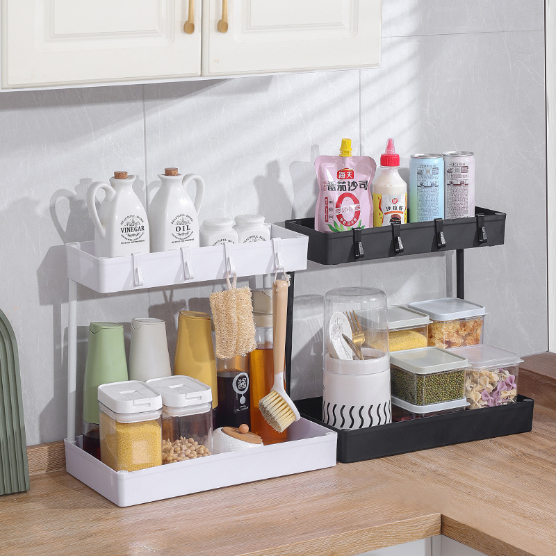 新しいクロスボーダーラベル付き二層引き出し式収納ラックキッチンシンク下スパイスラック引き出し収納ラック
