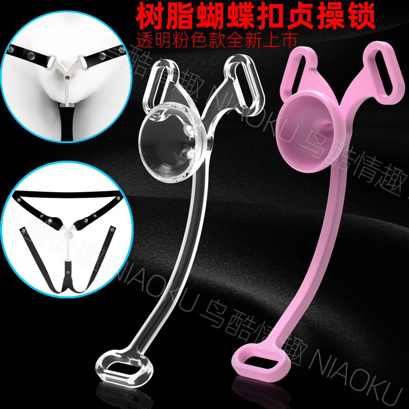 樹脂蝶ボタンCB貞操錠透明ピンク貞操ズボンマイナスフラットバンド貞潔錠偽娘隠しJJ