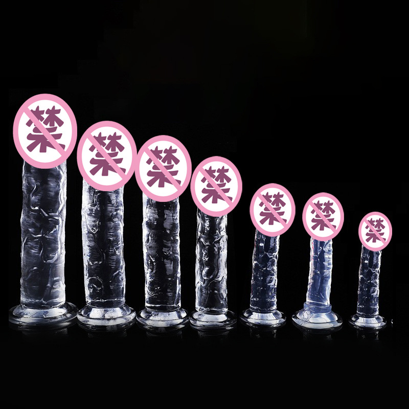 卵なし陰嚢シミュレーション陽具透明水晶吸盤の中の小さいサイズの女性用の自慰の偽のペニスの情緒JJ肛門は塞ぎます。