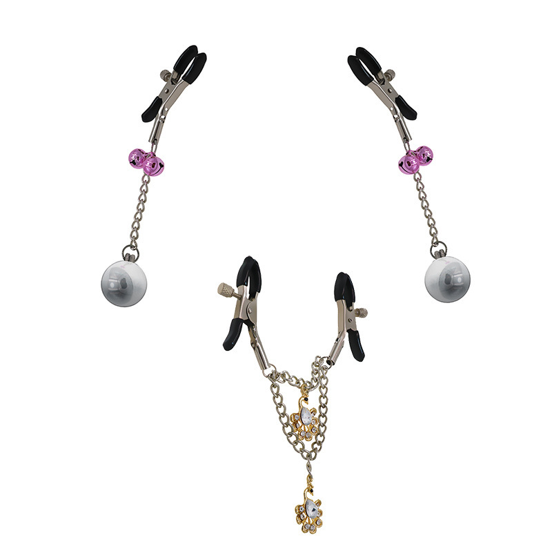 鈴の乳挟みの趣味の女性は陰唇挟みでSMを調教します。