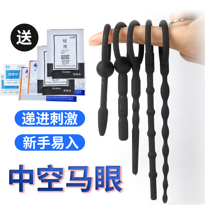 男性は馬の目で中空のカテーテルを塞いで、趣味の尿道を拡張してSMを調教します。