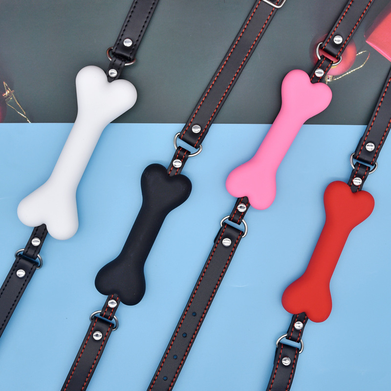 Smおもちゃの犬の骨の口のボールの口の塞ぎの刑具は強制的によだれを流して情を調整して成人の口ぶりを罰します。