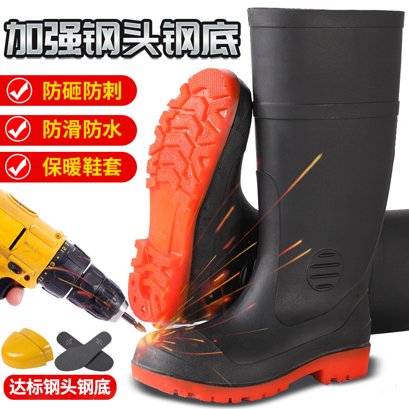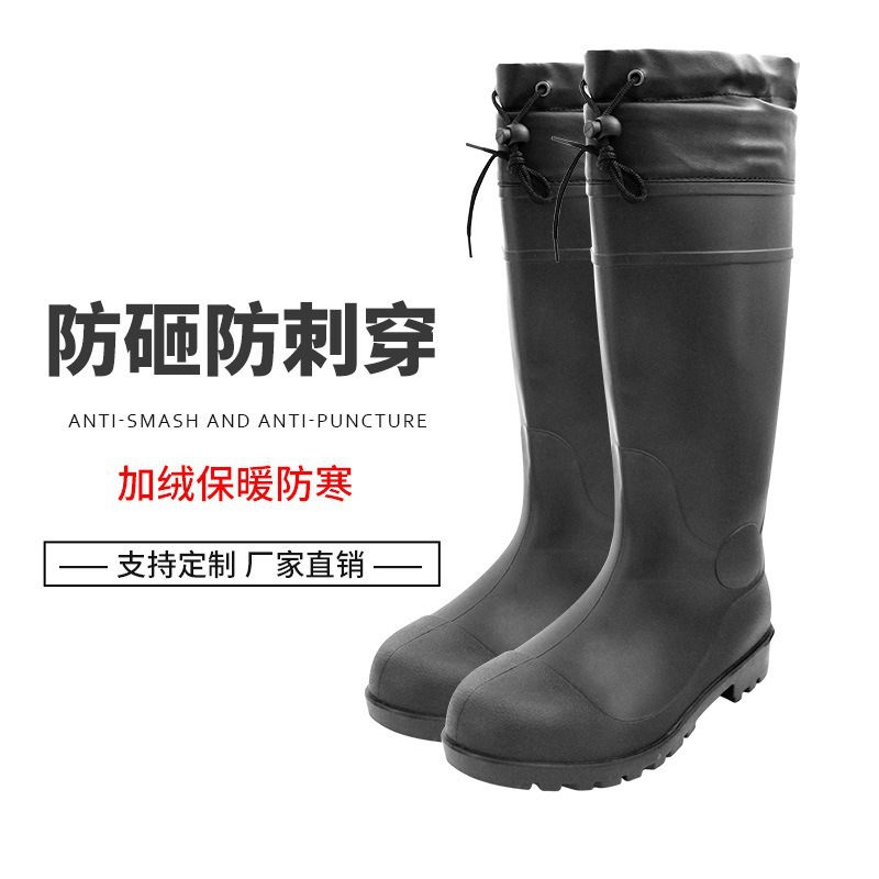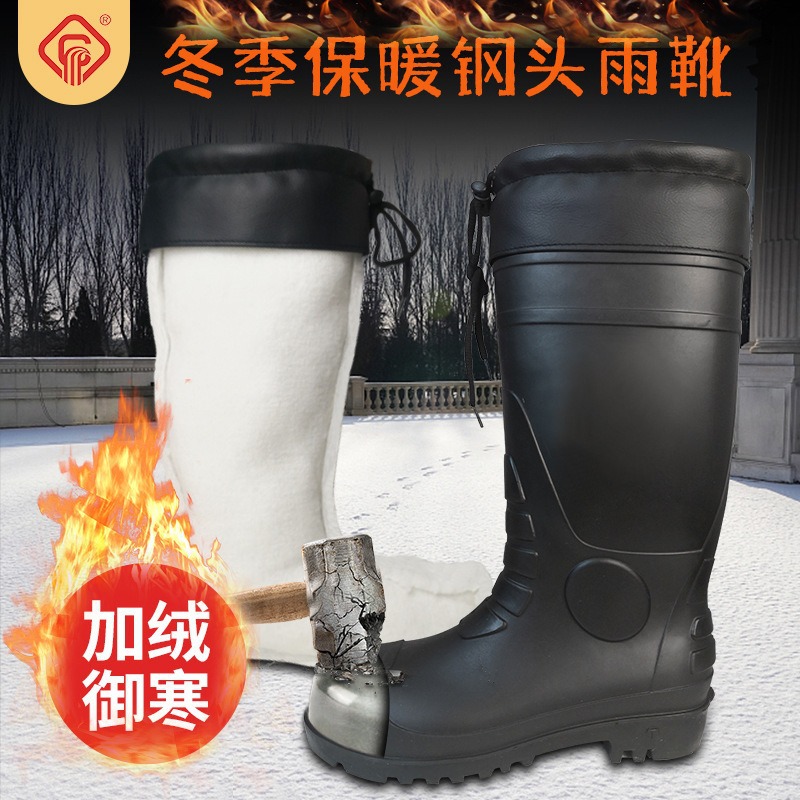高筒鋼頭鋼底雨靴防打防刺防火花労働保護ゴム靴を厚く保温綿雨靴工鉱靴