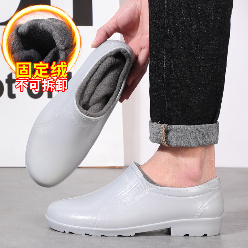 新型の厚い春と秋のゴム靴の綿雨靴の台所の耐摩耗性の滑り止めの低い水の靴の保温は綿の綿毛の渉水靴を含みます。