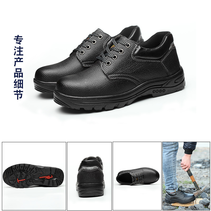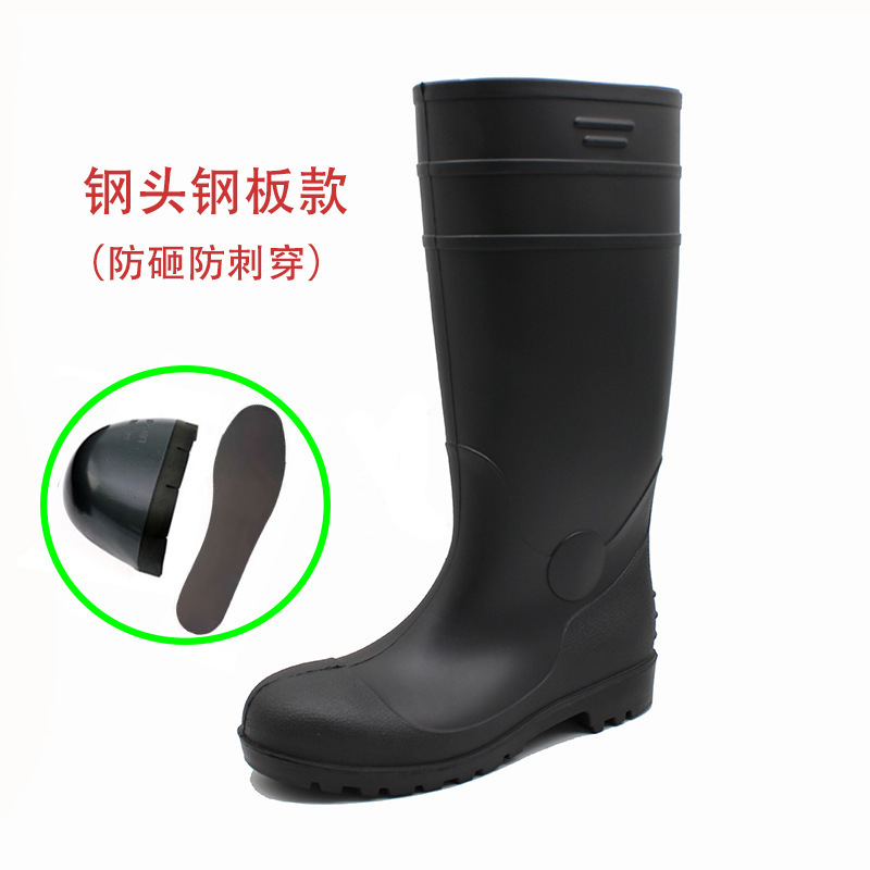 全黒色雨靴鋼頭鋼板防打防刺安全靴水靴高校低筒絶縁雨靴防滑靴