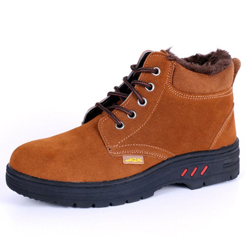 現物卸売り牛革冬にベルベットを厚くした労働保護靴綿靴安全靴男性防護靴が保温靴を壊さないようにする
