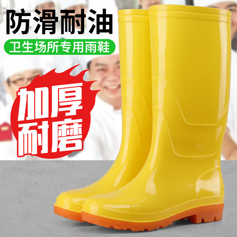 高筒雨靴酸アルカリ防水靴綿保温雨靴食品厨房水靴黄色水靴労働保護靴