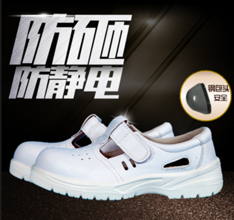 白い抗打安全防護靴抗滑酸アルカリ電子工場専用抗静電靴厨房工靴メーカー卸売り