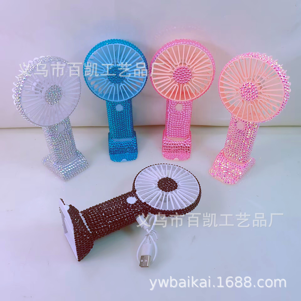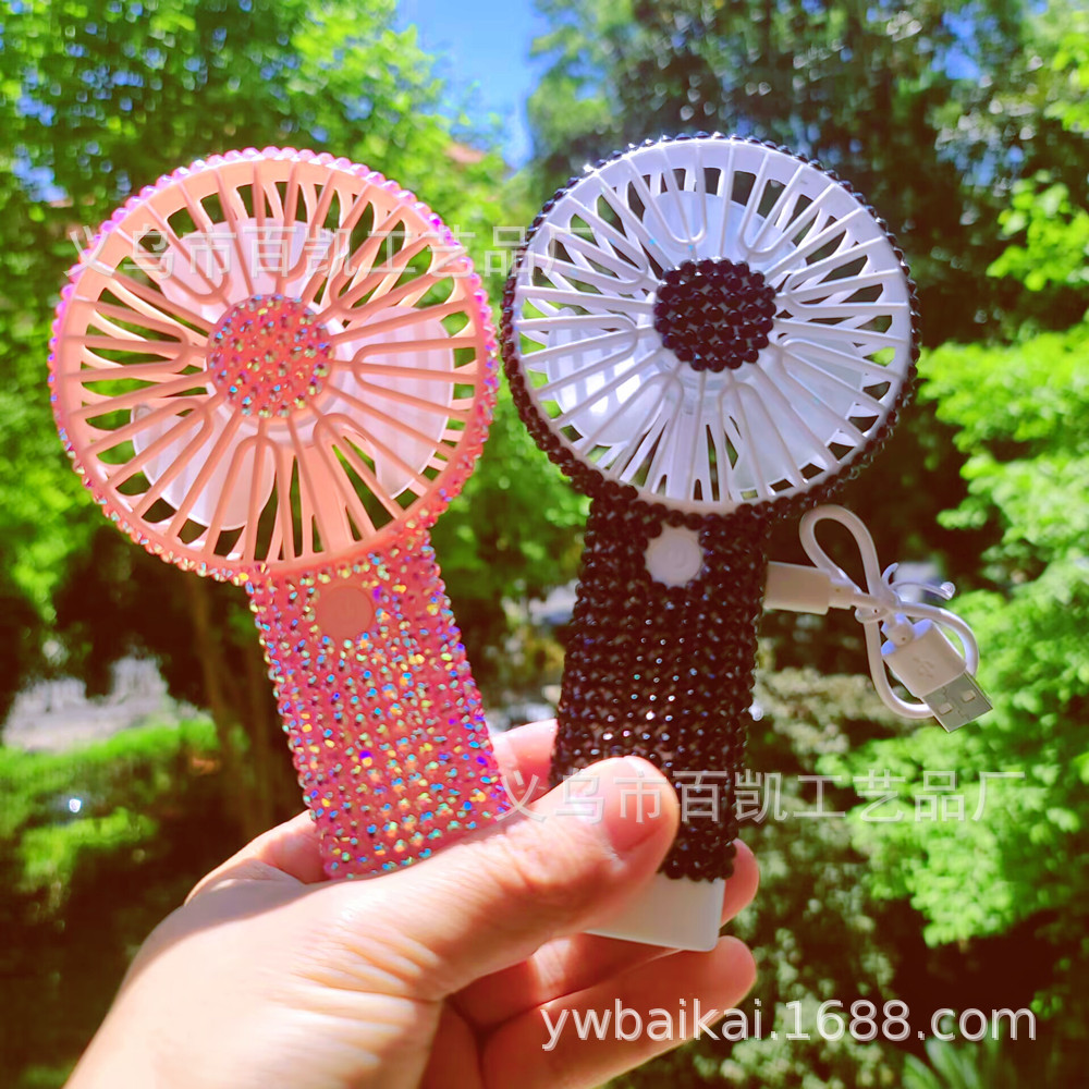 2025 ダイヤモンドがちりばめられた小型ファン USB 充電インターフェイスサイレント強風小型ポータブル学生寮
