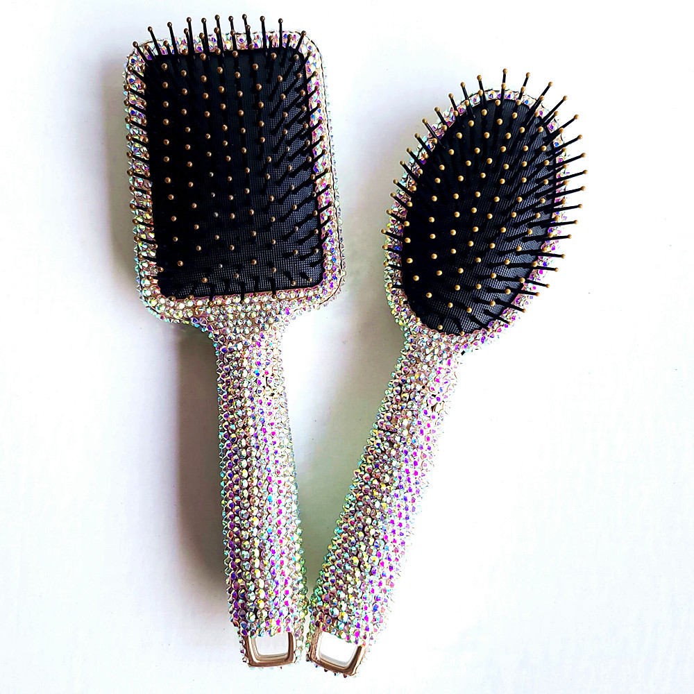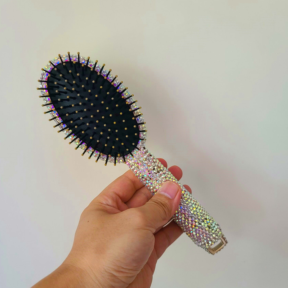 豪華な手作りのダイヤモンドの化粧の櫛のマッサージの櫛の水晶はダイヤモンドの木製の携帯の女性の髪の櫛を入れます。