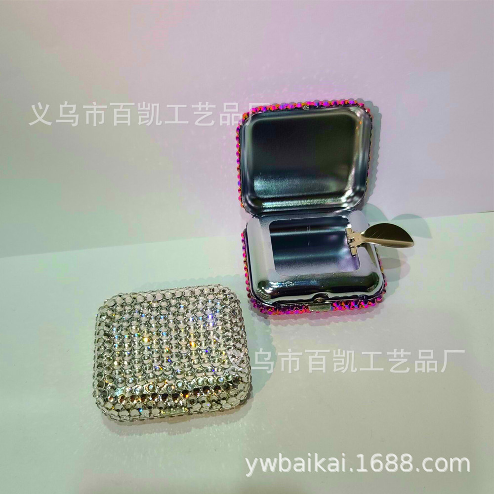 ネット赤ミニ型高級携帯型金属小灰皿角型灰皿に水晶満ドリル製