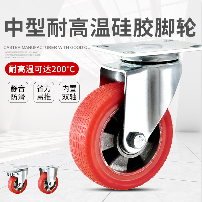 3インチ4インチ5インチ中型アルミ芯シリコン耐高温キャスター万向輪静音双軸受輪オーブン輪