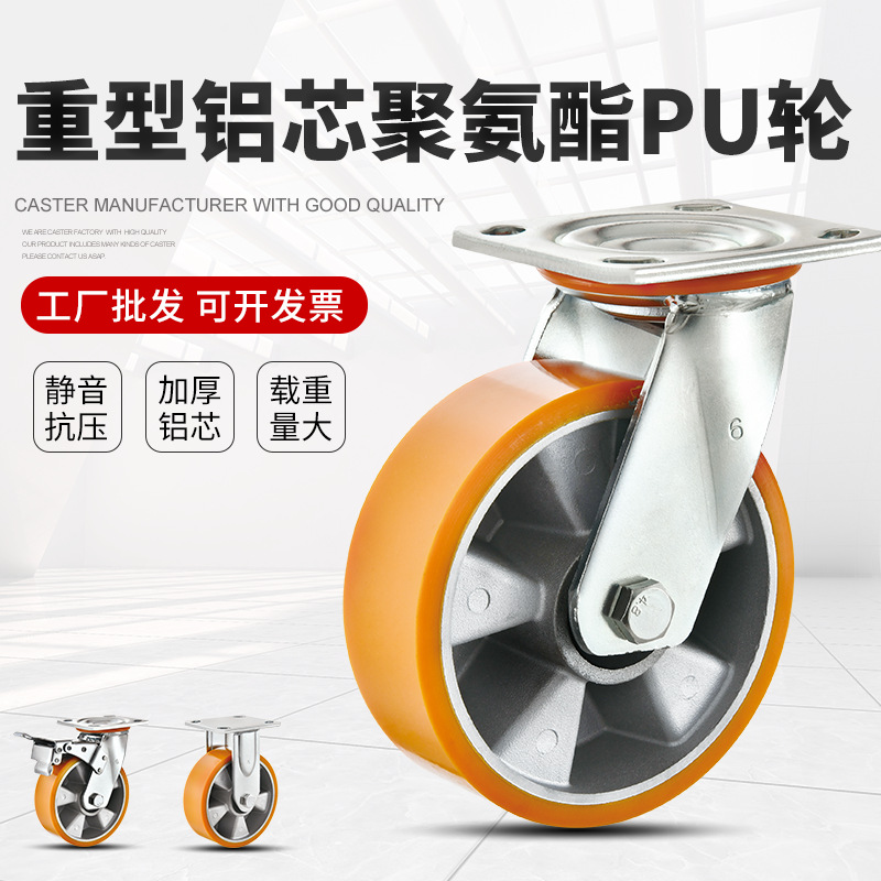 4インチ5インチ6インチ8インチアルミコアポリウレタンキャスターpu車輪静音圧壊工業カート万向輪ゴム輪