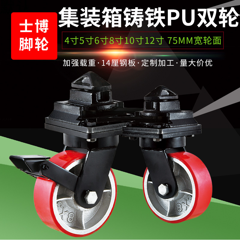 加重型コンテナキャスター6インチ8インチ10インチ12インチ鉄芯puユニバーサルホイール75mm幅静音荷重ホイール