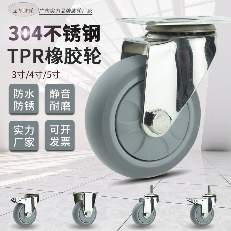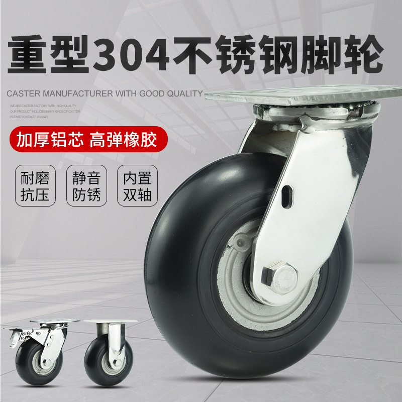 304ステンレスキャスター3インチ静音ユニバーサルホイール中型4インチ5インチ押し車輪tprソフトテープブレーキホイール