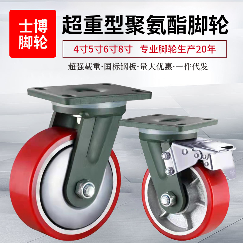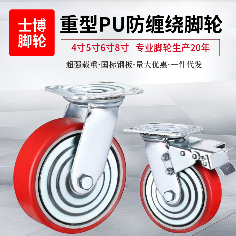 士博重型巻き止め万向車4インチ5インチ6インチ8インチ手押し車足ブレーキ車輪ポリウレタンpuトレーラーホイール