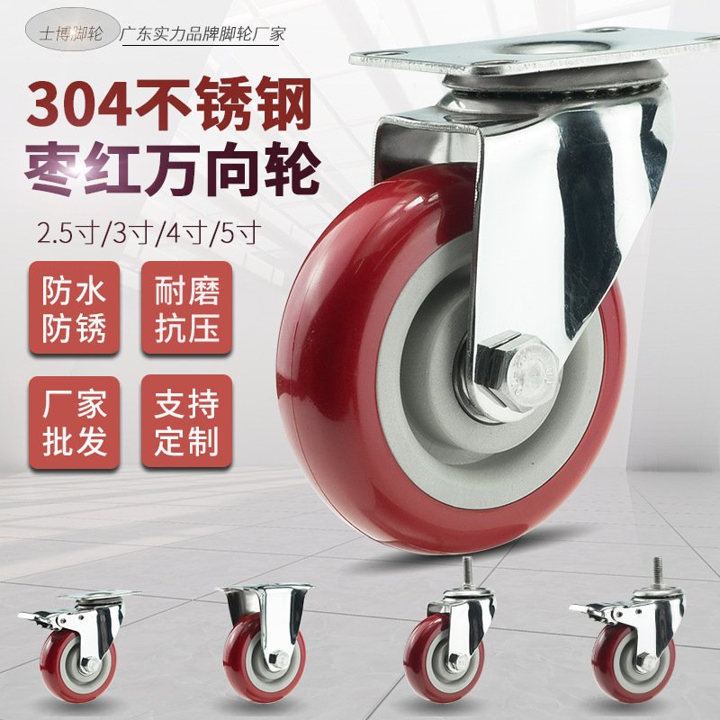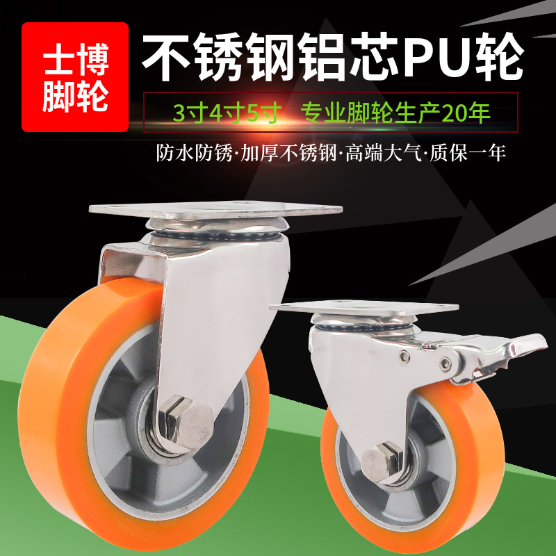 士博キャスター3インチ4インチ5インチステンレスキャスター万向輪耐摩耗性アルミ合金ホイール芯包ポリウレタンpu輪