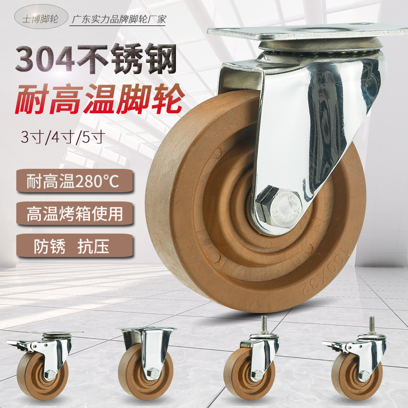 3インチ耐高温300度オーブンカートステンレスキャスター4インチワンウェイホイール耐摩耗ナイロンホイール5インチオーブンホイール
