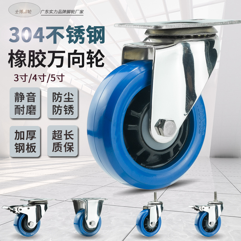 3インチ4インチ5インチ304ステンレス静音耐摩耗ゴム万能車輪ブレーキキャスター工業手押し車輪車輪車輪