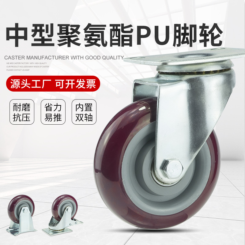 3インチポリウレタンキャスター工場卸売ステンレス中型ホイール自在方向性ブレーキ4インチ手押し車ホイール