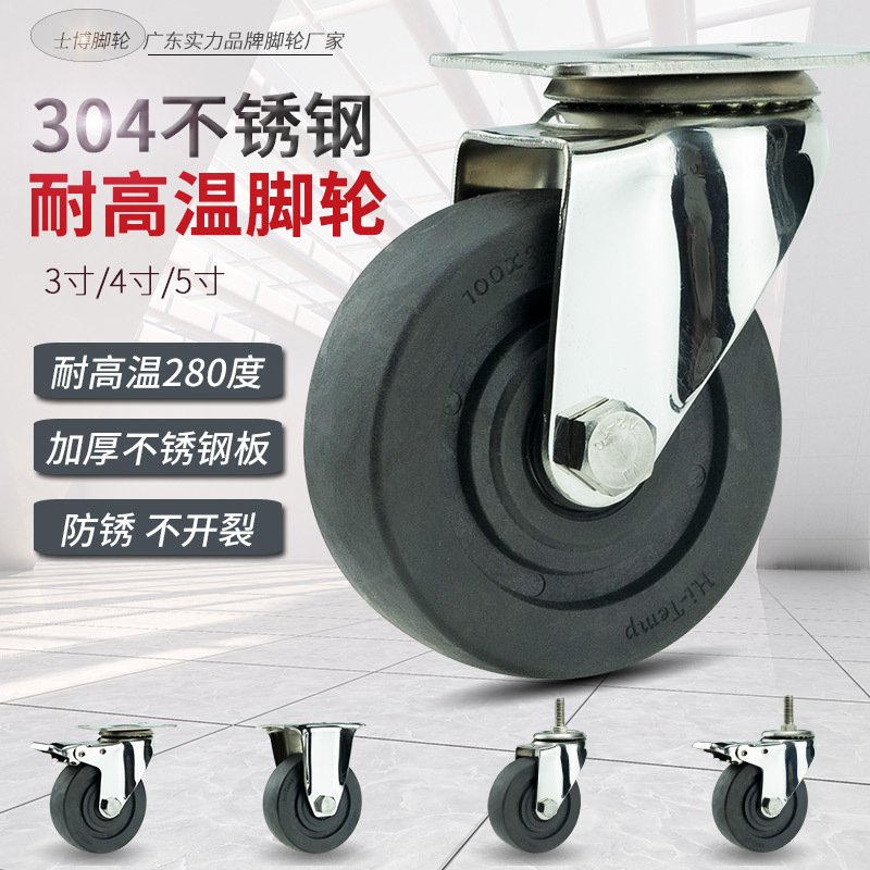 耐高温キャスター2インチ3インチ4インチ5インチ304ステンレス鋼万能ブレーキ付きガラス繊維ナイロン万能車輪
