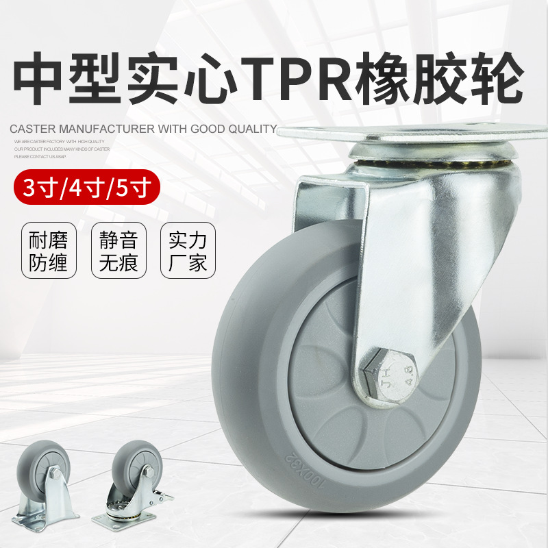3寸4寸5寸静音キャスターtprゴム万向輪中型巻き止め工業ブレーキカート活動車輪