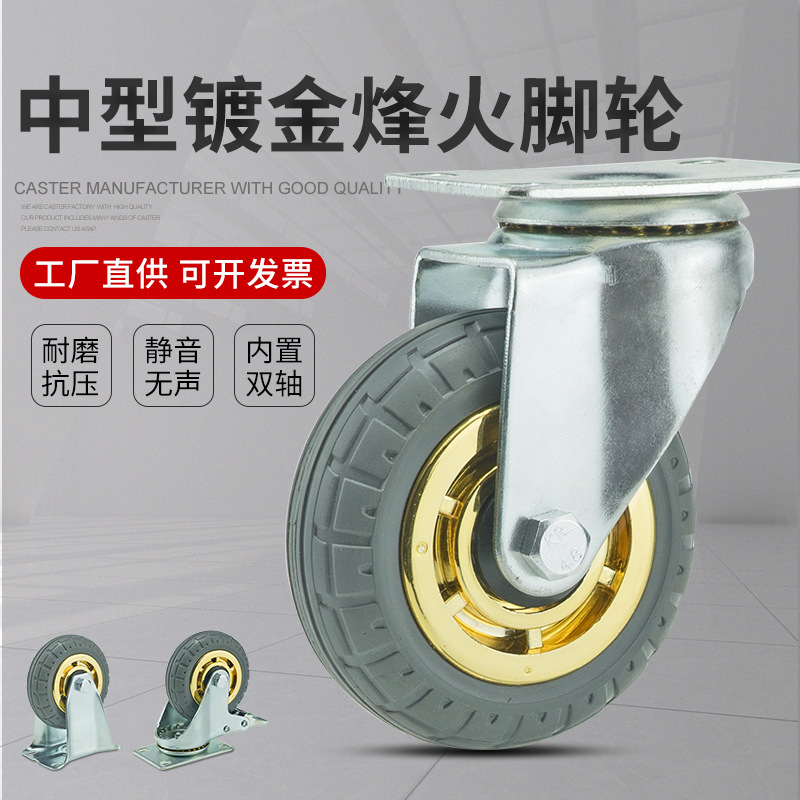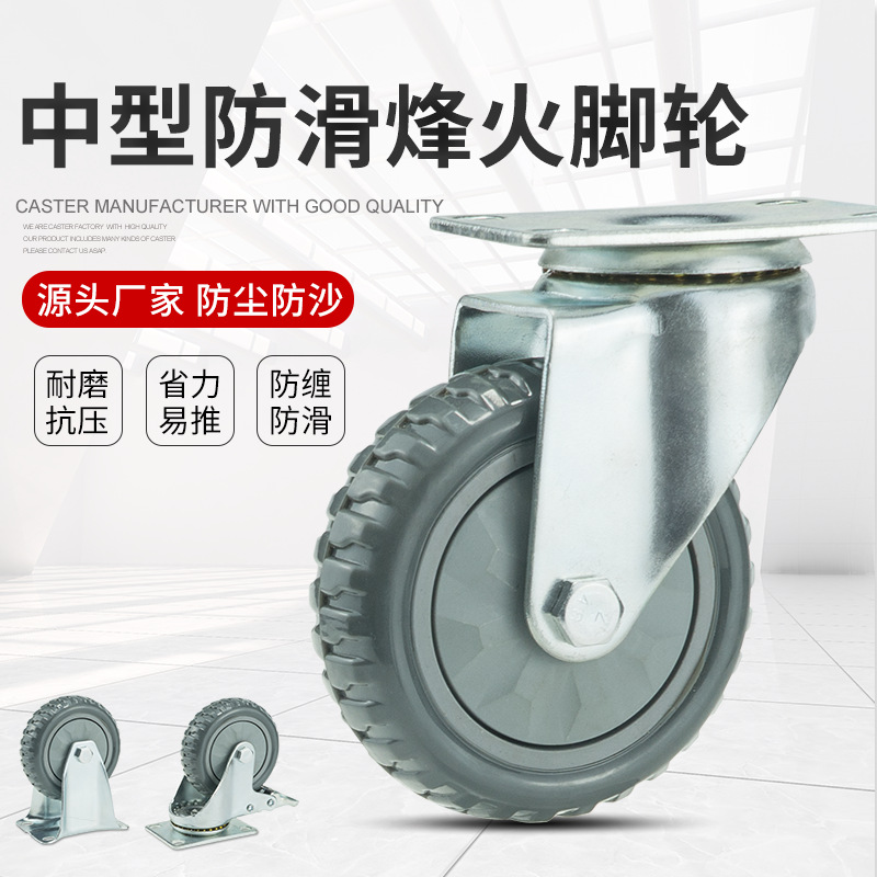 メーカー直販3インチ4インチ5インチゴムホイール万向キャスターグレー烽火静音弾力車輪平板車輪