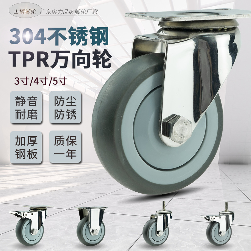 3インチ4インチ5インチ304ステンレスキャスター静音ユニバーサルホイールtprソフト防錆手押し車工業ホイールホイール