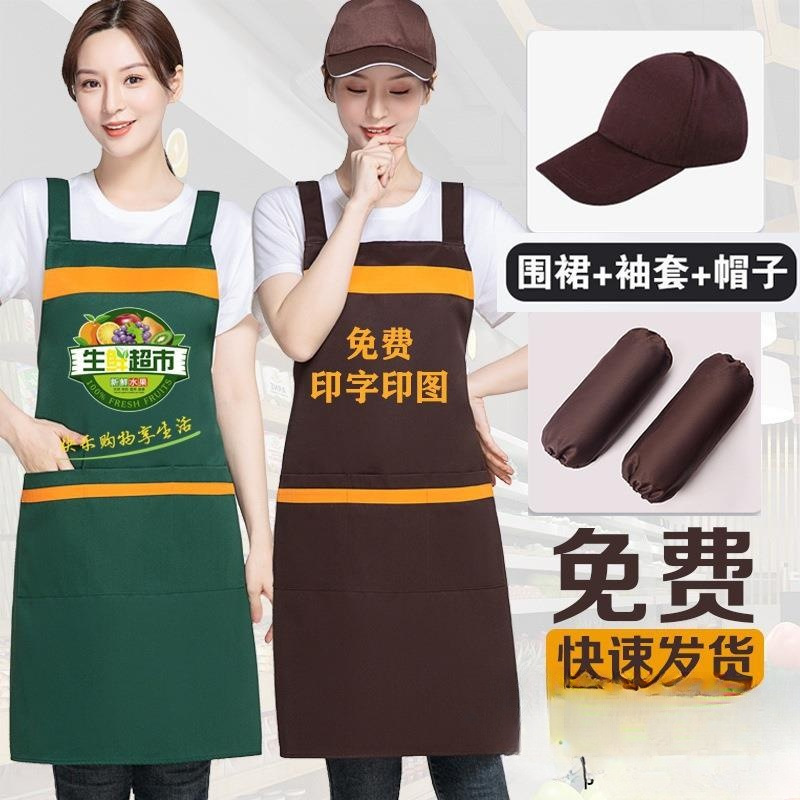 エプロン三点セットロゴ市果物店ファッション作業服女性飲食サービス員が印字した