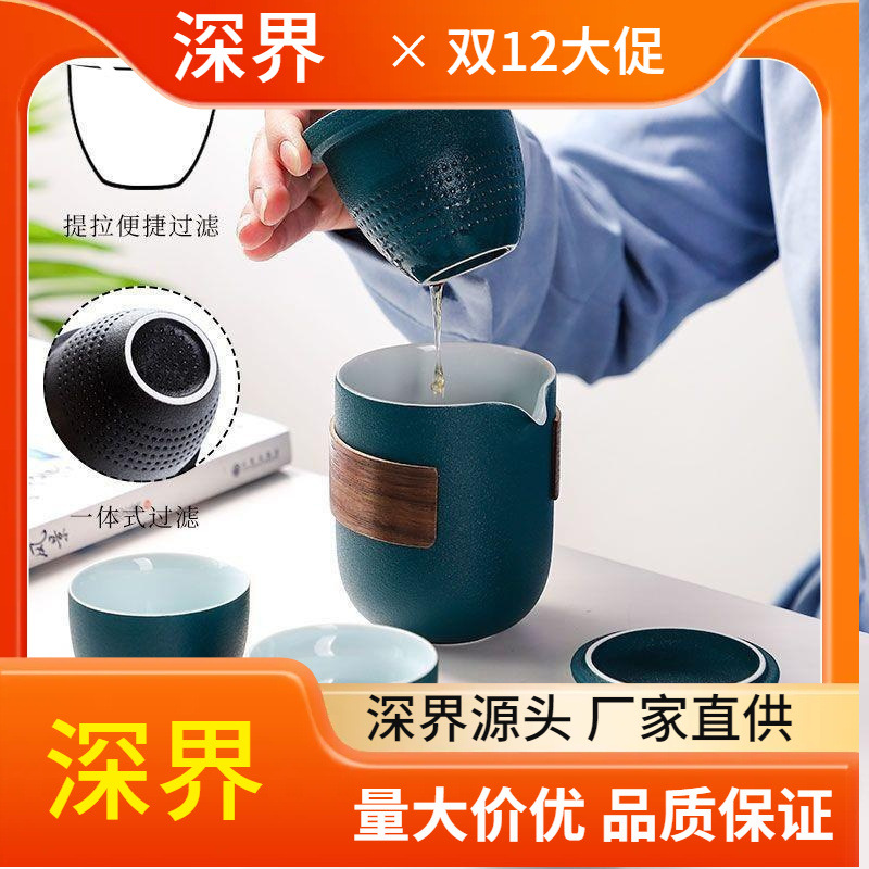 ポータブル旅行茶器小セット戸袋工夫泡ティーポットカップ一人快客カップ一本二四杯