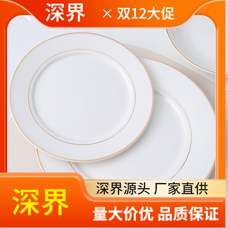 ステーキ皿金辺陶磁器平盤浅盤円形洋食バイキング皿デザートケーキ皿食卓吐骨皿