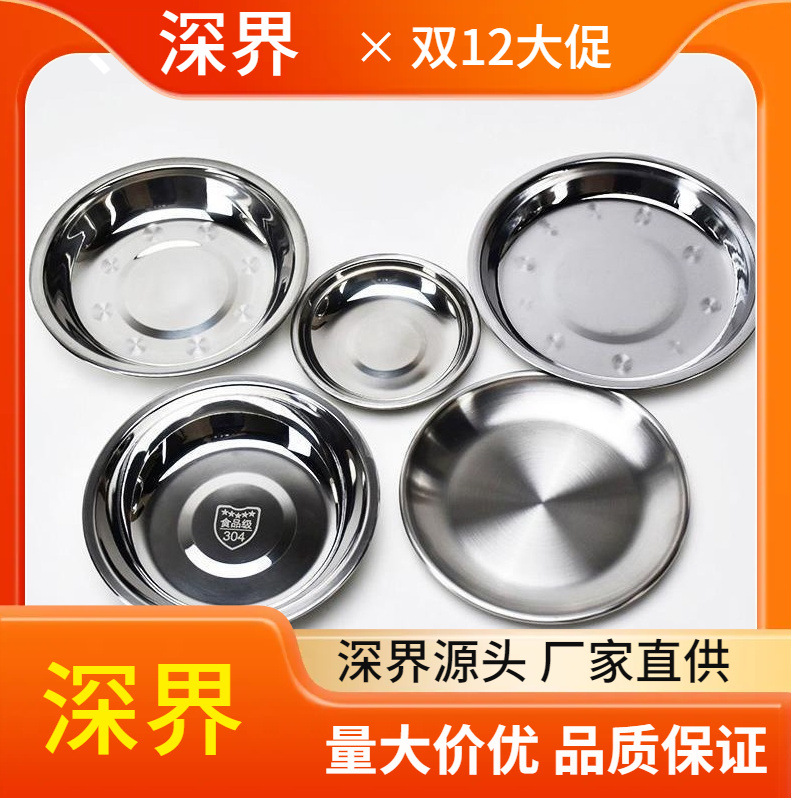 ステンレスの皿の円盤の野菜の皿の家庭用の円形の鉄の皿の浅い皿の小さい皿の皿のトレーの平皿のおかずの商用