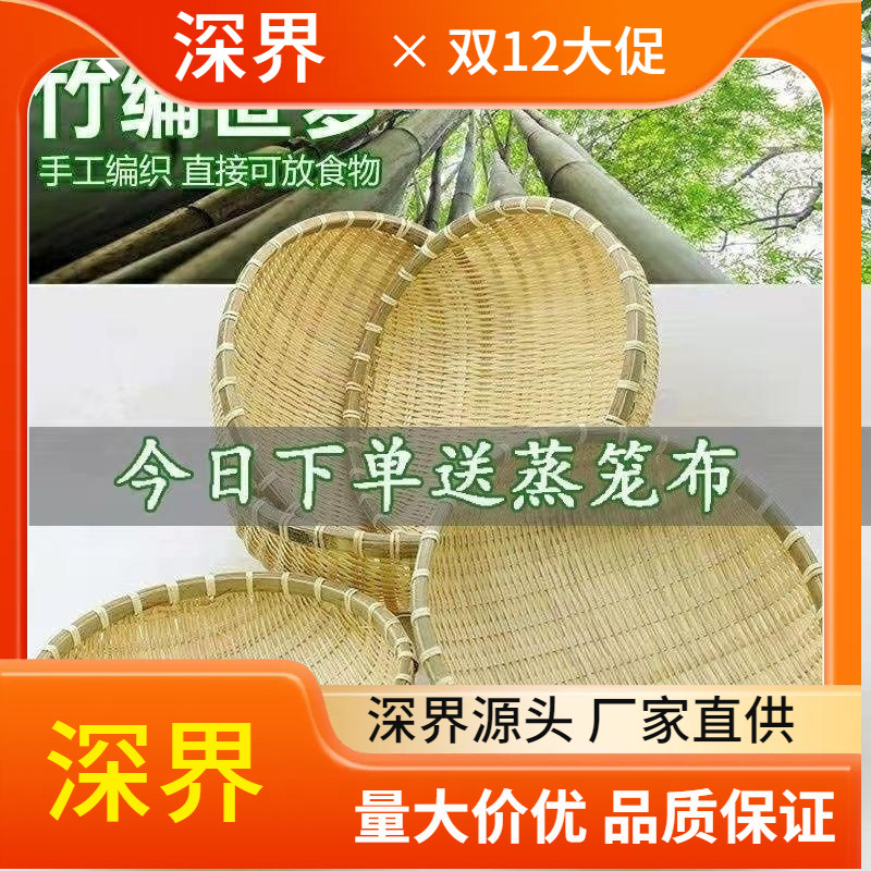 竹の編み製品のマントーのかごは箕の農家の家庭の手で丸い収納の水たまりのかごのかごに穴がないふるいがあります。