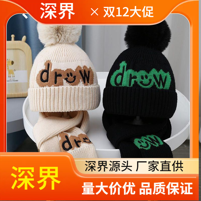 中の子供の帽子のマフラーのスーツの男の子の女の子の冬の保温の中の毛糸の帽子の赤ちゃんの2つのセットの帽子