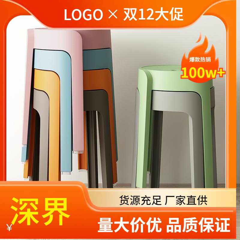 北欧のおしゃれな腰掛けのプラスチックは大人の腰掛けを厚くして、テーブルの腰掛けを積み重ねることができます。