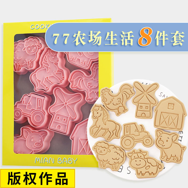 農場動物ビスケット金型8点セット風車乳牛コブタ馬鶏羊クッキー金型