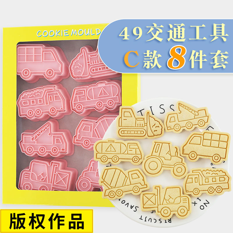 交通機関ビスケット金型c型8点セットトラクタークレーン3d立体プラスチック改糖クッキー焙煎ツール
