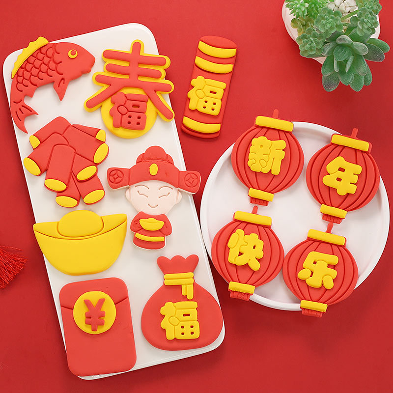 新年のマントーの鋳型の家庭の春節の楽しい元宝の財神の漫画のマントーの模様のマントーの麺の鋳型