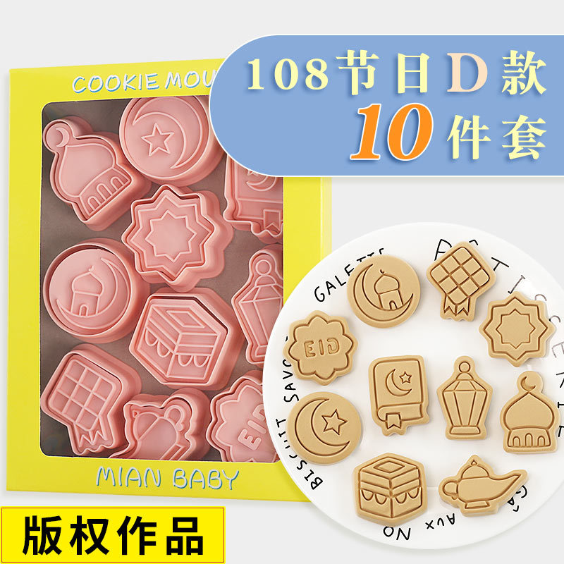 祝日のビスケットの鋳型d種類の小さいサイズの10セットのプラスチックのクッキーの鋳型の3d立体の砂糖をひっくり返して焙煎するツール