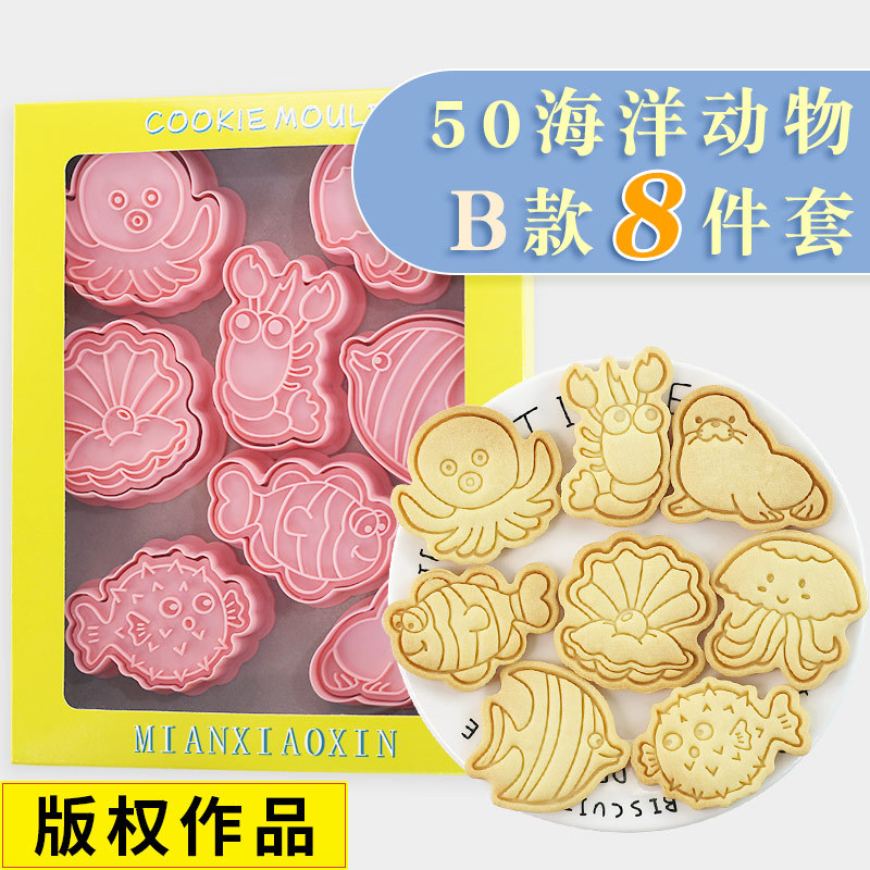 海洋動物ビスケット金型b型8点セットロブスタータコ3d立体プレス