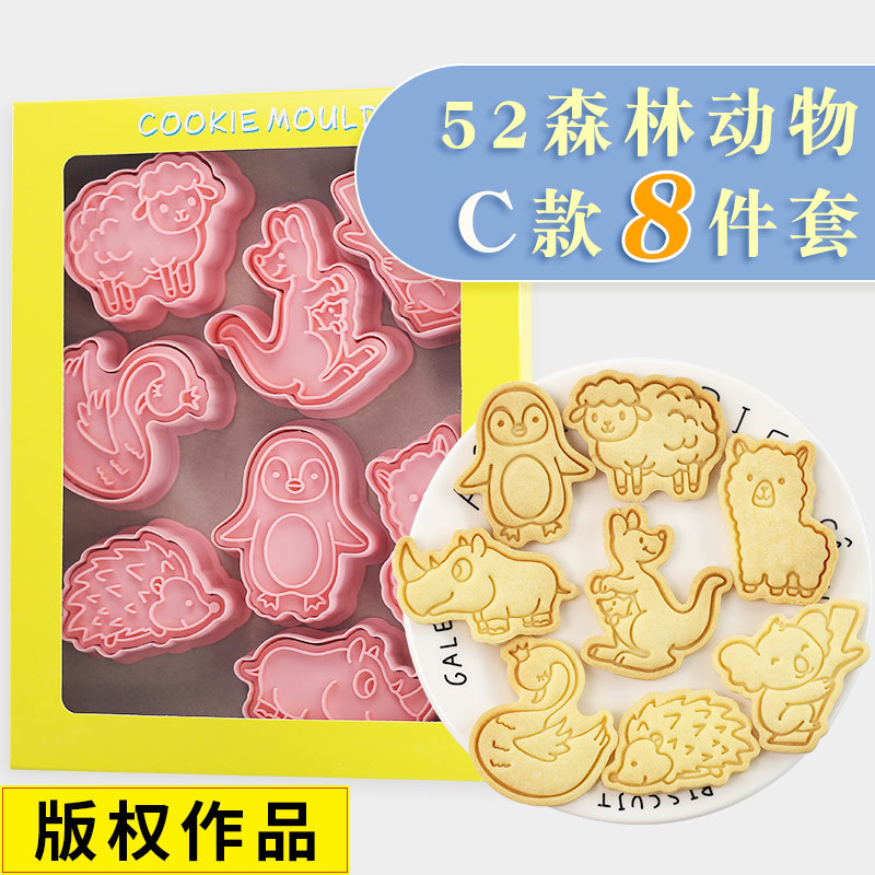 動物ビスケット金型cタイプ8点セットペンギンラクダプラスチッククッキープレス金型3d立体砂糖焼きツール
