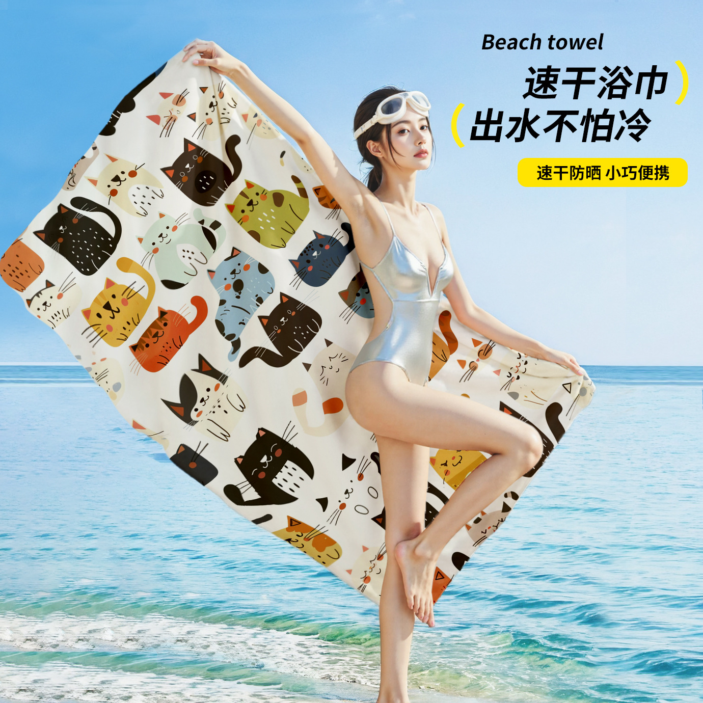 漫画猫プリントビーチタオル海辺の休暇ポータブルタオル速乾性吸収性水泳バスタオル写真でカスタマイズ